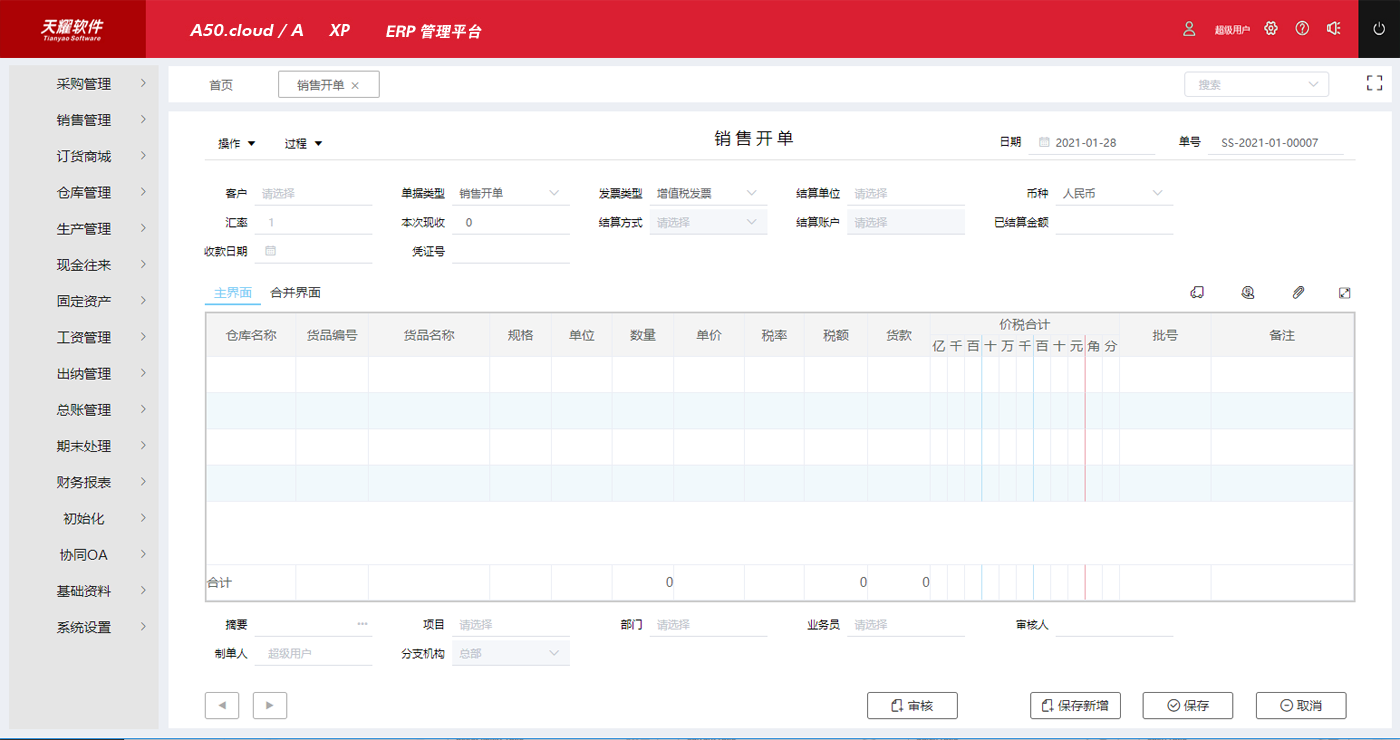 天耀A50.cloud /A 《ERP 管理平台》:基于互联网环境浏览器应用的管理软件平台,平台支持浏览器方式应用和APP移动端应用。专属(私有)云服务器部署或PC服务器本地部署(需接入互联网), 支持多用户应用。